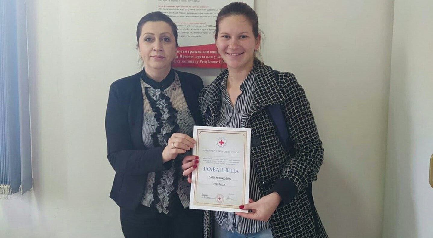 – Сара је вриједна млада дјевојка, са изузетним осјећајем за хуманост. Увијек је спремна да учествује у свим активностима Црвеног крста. Од основне школе истицала се кроз разна такмичења у организацији Црвеног крста Републике Српске. Показала је посебну вољу и жељу да напредује у свим сегментима рада наше хуманитарне организације, анимирала је нове чланове и несебично им пружала подршку. Похађала је едукативне радионице, а стечено знање и вјештине такође је дијелила са новим члановима. И у вријеме пандемије вируса “ковид 19” Сара је активно учествовала у подјели заштитних средстава и опреме суграђанима, као и у осталим активностима. Због свега наведеног, без икакве сумње, ова захвалница иде у праве руке – изјавила је Весна Ристић, секретар ОО Црвеног крста Рогатица.