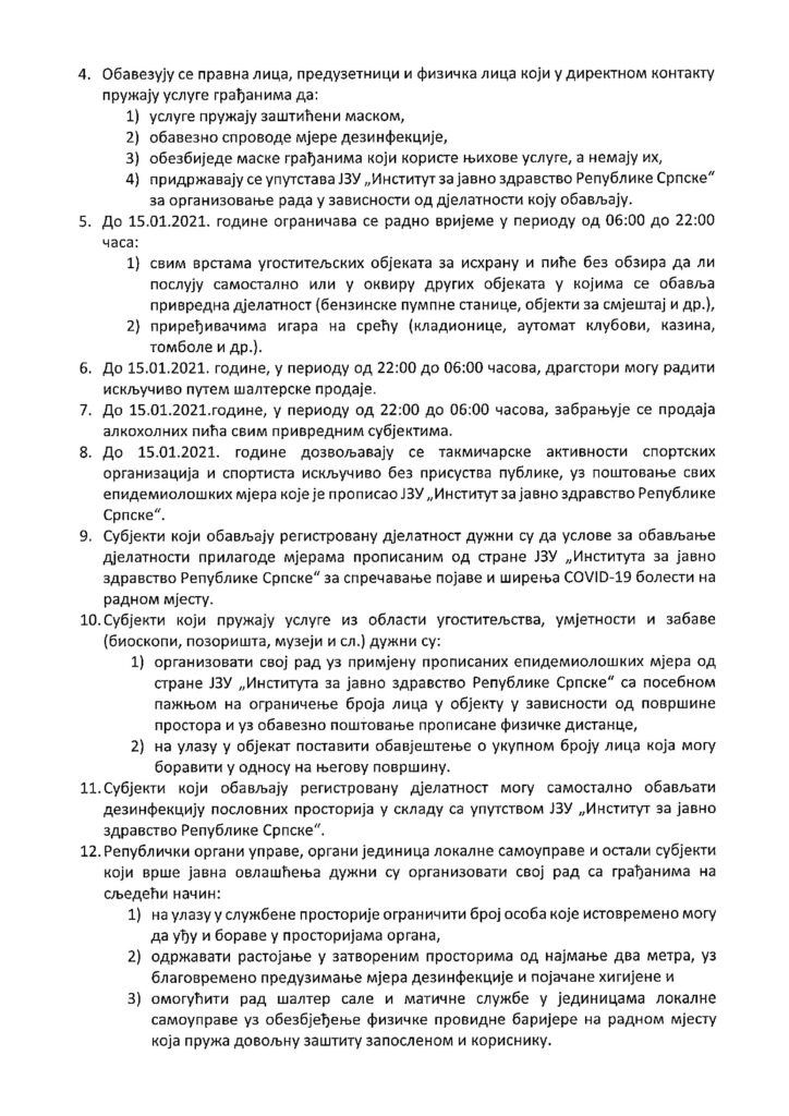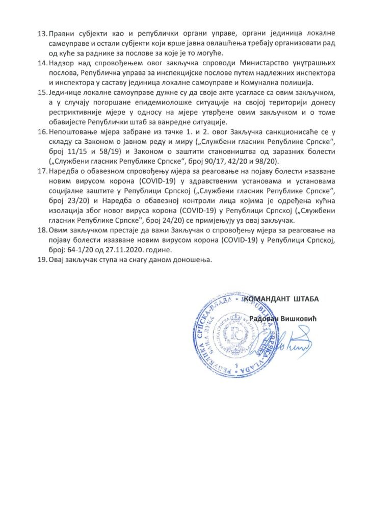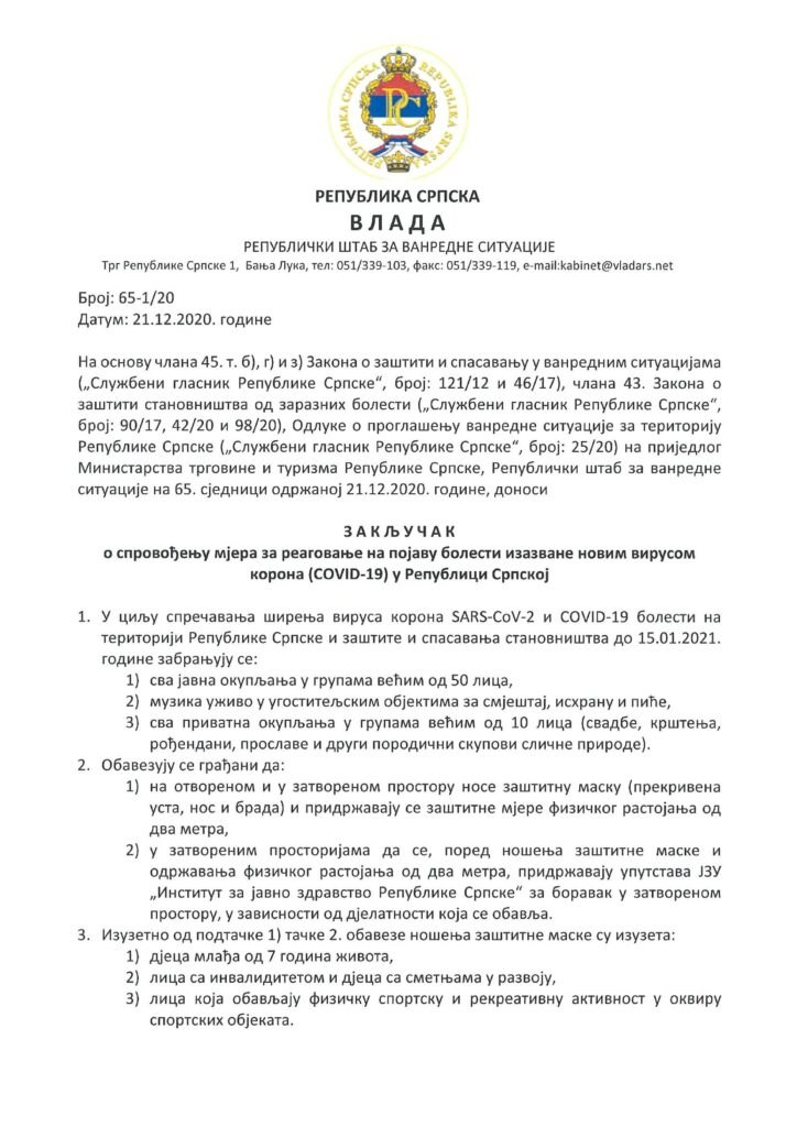 У наставку можете да се подсјетите актуелних мјера Републичког штаба за ванредне ситуације.