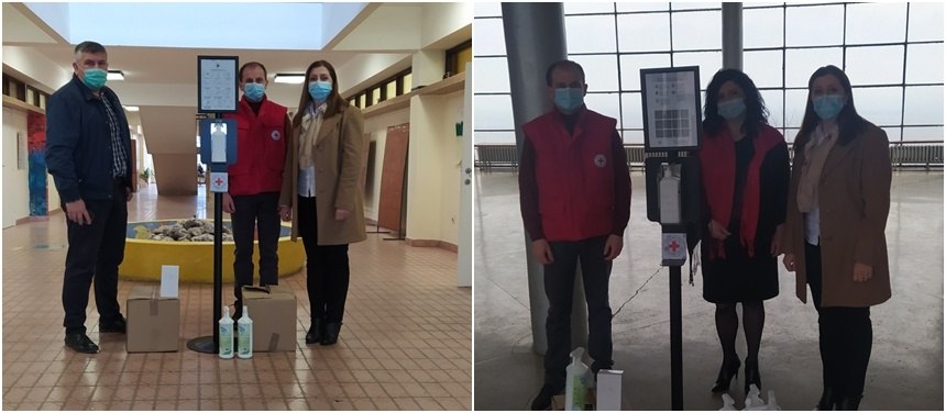 Представници Општинске организације Црвеног крста Рогатица уручили су данас Основној школи “Свети Сава” и Средњошколском центру “27. јануар” по један сталак за дезинфекцију руку, по 20 литара дезинфекционих средстава и по један бесконтактни топломјер.