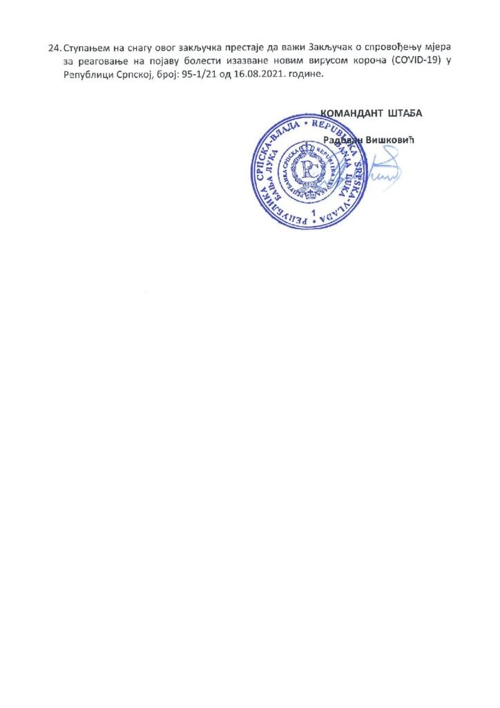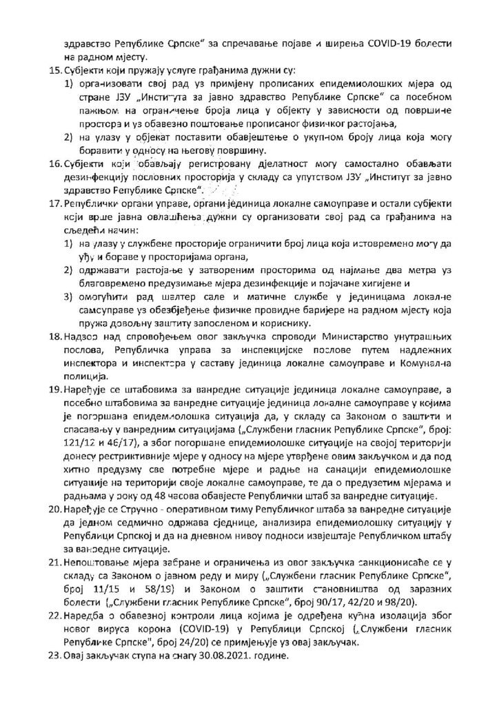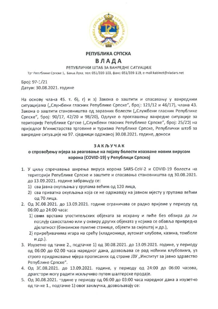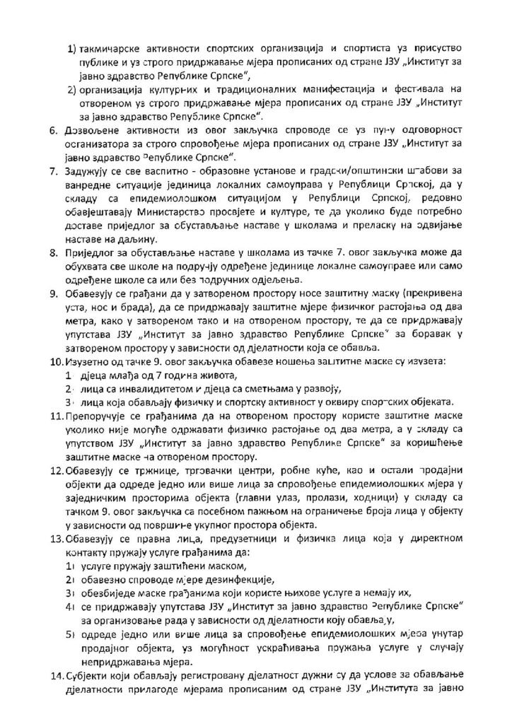 Закључак о спровођењу мјера за реаговање на појаву болести изазване новим вирусом корона (COVID-19) у Републици Српској