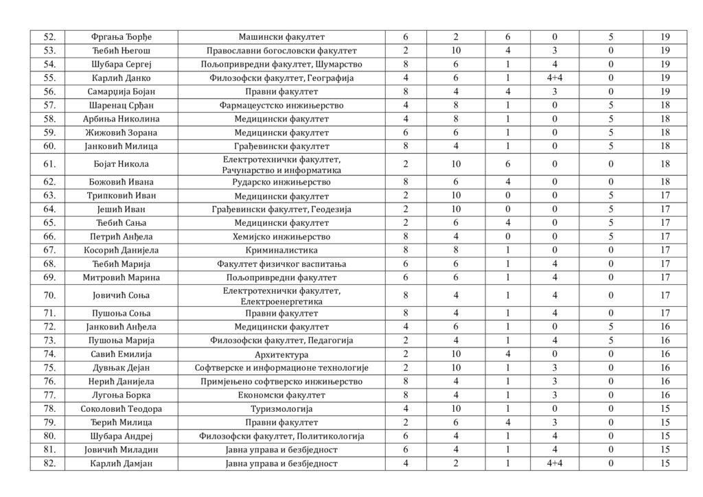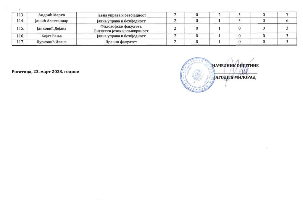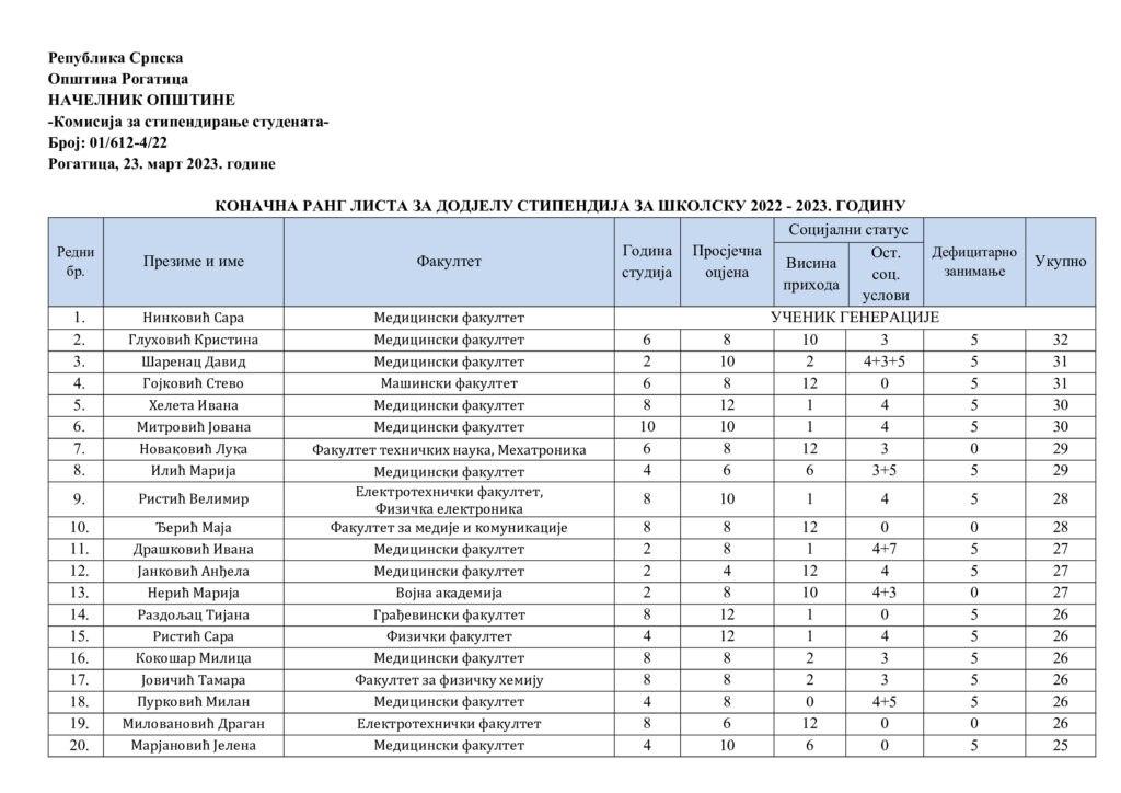 Коначна ранг-листа за додјелу стипендија Општине Рогатица