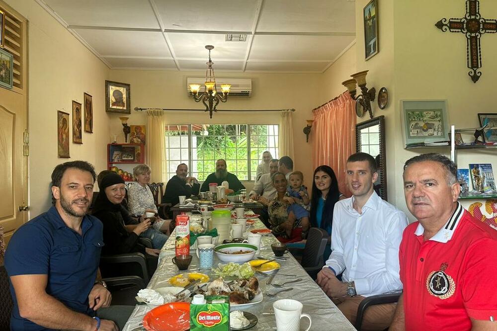 – СПЦ још увијек нема свој храм или духовни центар у овој држави, али ако Бог да надамо се ускоро објекту гдје бисмо могли имати мању капелу посвећену Светим апостолима Петру и Павлу, а који би уједно био и духовни центар за очување и ширење српске православне духовности. На литургији поред браће православних Руса и Украјинаца је било и око тридесетак угледних Срба који живе и раде у Панами. Служби Божијој је присуствовао и угледни добротвор из Чикага, Раде Добрашиновић са ћерком Миланком, желећи да упознају браћу православну и Србе широм овог континента који су овдје дошли још и прије Другог светског рата – рекао је у својој бесједи архимандрит др Евстатије и нагласио да бисмо требали да почнемо да користимо ријеч политисмос умјесто ријечи цивилизација:
