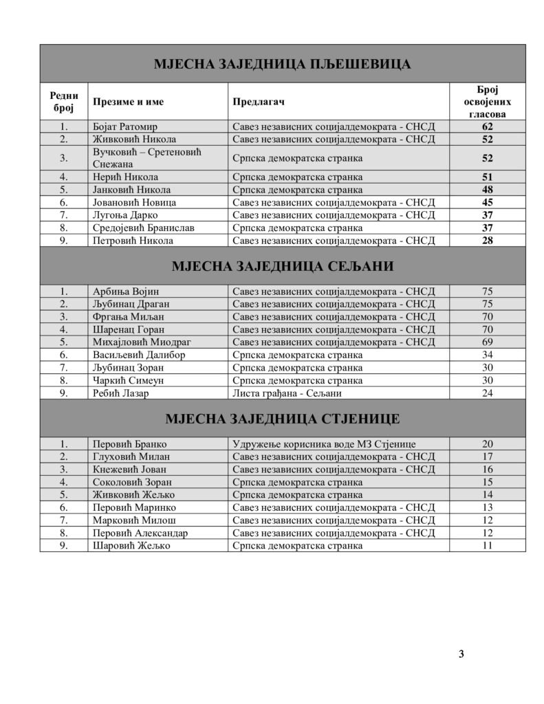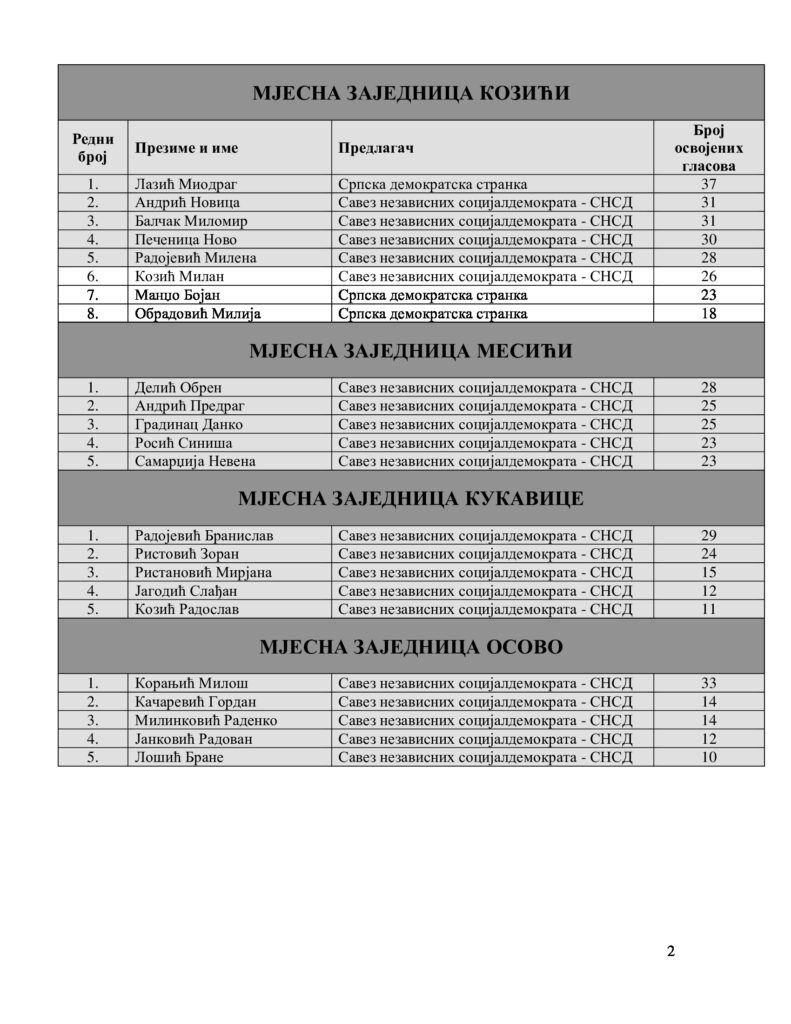 У наставку је могуће погледати прелиминарне резултате по мјесним заједницама.
